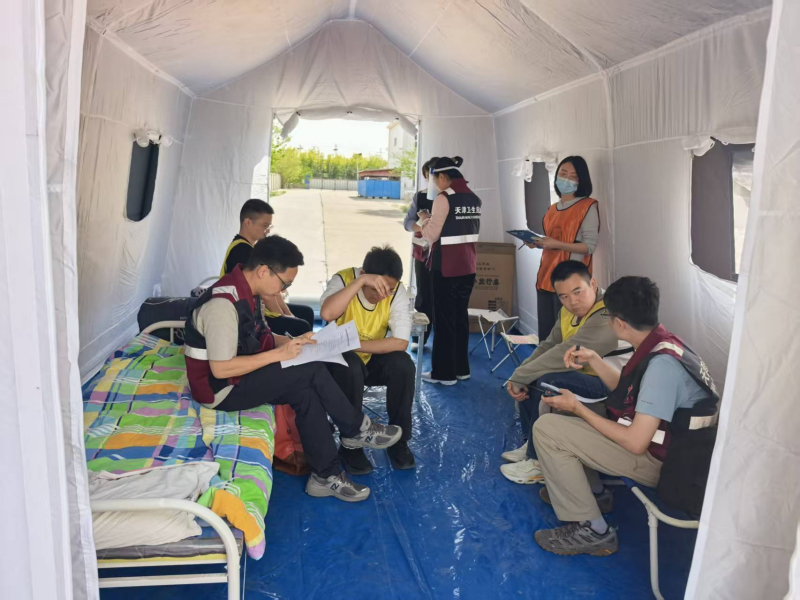 实训活动以“X市地震灾后卫生防疫”为情景,设置领导动员、野外生存、实战操作、评估总结四大环节。学员首先完成帐篷搭建、食物识别等野外训练,沉浸式体验野外驻扎挑战。随后分组开展全流程实战作业,训练内容覆盖安置点走访、个案流调、环境评估、实验室采样、疫情研判等核心工作,在碎片化信息整合与限时处置压力下,锤炼专业能力与心理素质。