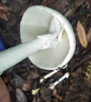 致命鹅膏长得白白净净,身才高挑,菌面(即菌盖)光滑干净,没一丝斑点和疣突。菌颈系一条轻薄柔软的白色围巾(即菌环)。一条雪白的大长腿(即菌柄),脚穿白色的中筒靴(即菌托)。一身白,真可谓是“蘑界”的一枚“美菇儿”。春夏季出没于我国华南和西南等地带的阔叶林地面上,一副洁白无邪的样儿,迷惑着从它身边走过的人族。