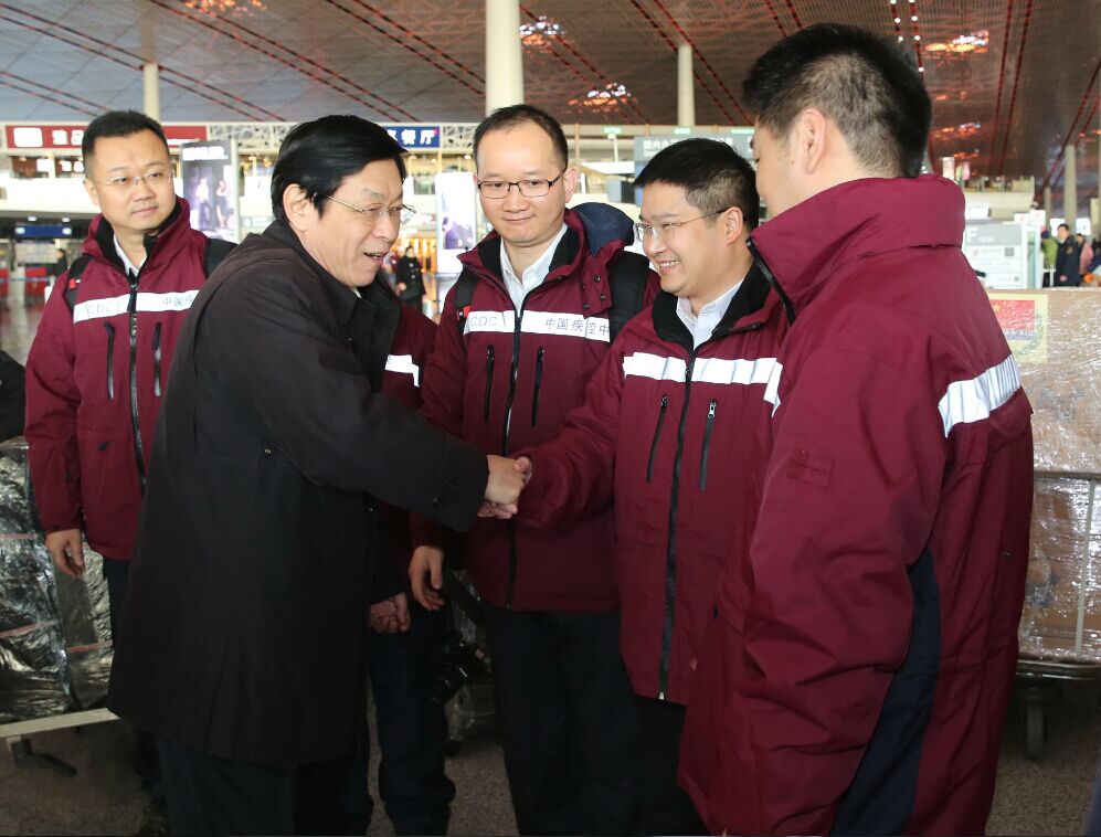 中国疾控中心党委书记梁东明及部分队员所在单位领导和相关人员到机场送行,并勉励队员们要与塞方和第二批培训队伍密切配合,再接再厉,确保顺利完成任务,保证自身安全,实现“打胜仗,零感染”的目标。