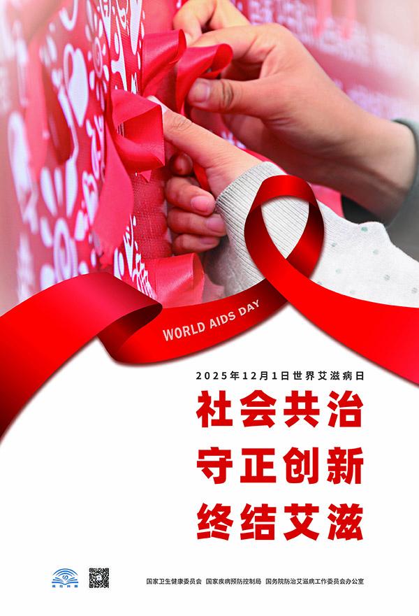 2025年12月1日是第38个“世界艾滋病日”,我国的宣传活动主题为“社会共治,守正创新,终结艾滋”。近日,国家疾控局组织制作了2025年“世界艾滋病日”主题宣传海报,各地可根据海报模板开发制作适合本地实际的宣教材料并广泛使用。
