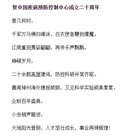 职业卫生所党政领导热烈祝贺中国疾病预防中心成立20周年祝福视频