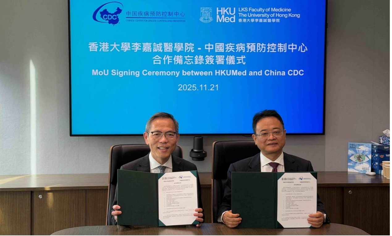 11月20日至21日,王健伟主任先后与香港中文大学赛马会公共卫生及基层医疗学院黄仰山院长、香港大学李嘉诚医学院刘泽星院长签署院际合作备忘录,明确在科研攻关、公共卫生人才联合培养及全球卫生实践等领域深化合作。双方将依托高校教科研优势与内地疾控现场实践经验,构建大湾区公共卫生科研协作机制,推动区域公共卫生资源整合。