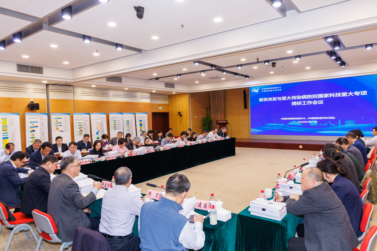 2026年3月31日下午,传染病重大专项专项办(国家卫生健康委科教司)、总师办(国家卫生健康委科技发展中心)、国家疾控局科教国际司及传染病重大专项总师组、秘书组专家一行赴中国疾控中心(中国预科院)开展新发突发与重大传染病防控国家科技重大专项调研工作。国家卫生健康委科教司监察专员郑忠伟、国家卫生健康委科技发展中心主任顾金辉、国家疾控局科教国际司副司长韩宏参加调研并出席调研工作会议。中心(院)主任(院长)王健伟主持会议并作汇报。
