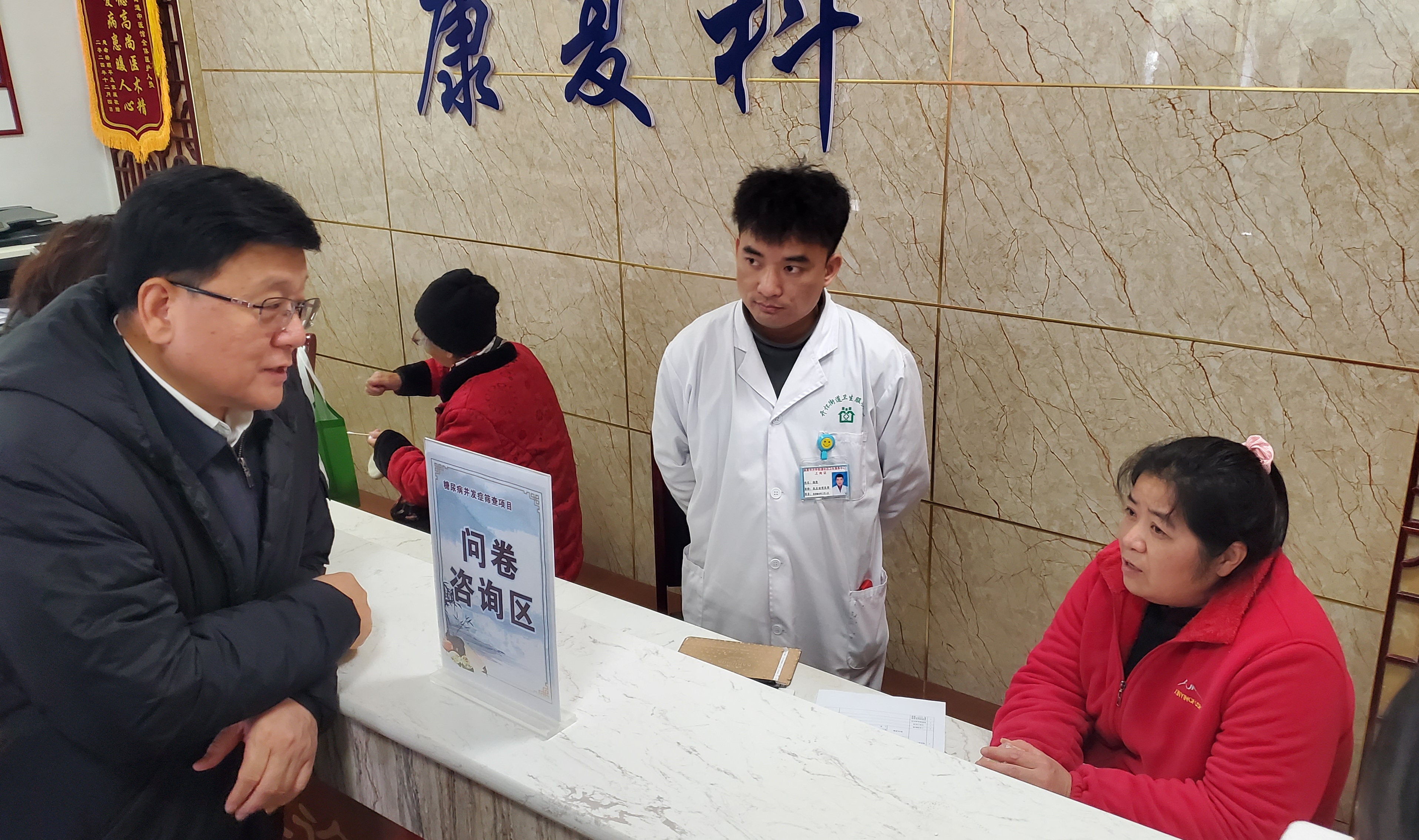在凯里市开怀街道社区卫生服务中心筛查现场,王贺胜理事长亲切看望正在接受检查的2型糖尿病患者,详细询问其健康管理服务内容、随访频次及用药依从性,并为长期坚守一线的基层医护人员送上诚挚慰问。他高度肯定凯里市各级医疗机构工作人员“扎根社区、服务为民”的敬业精神与“早筛早治、防盲治盲”的责任担当,称赞其以实际行动践行了“人民至上、生命至上”的健康理念。